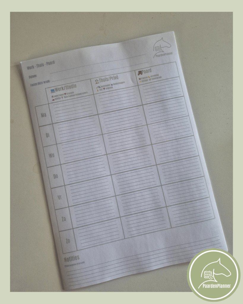 - Dagelijkse indeling voor werk, thuis en paard
