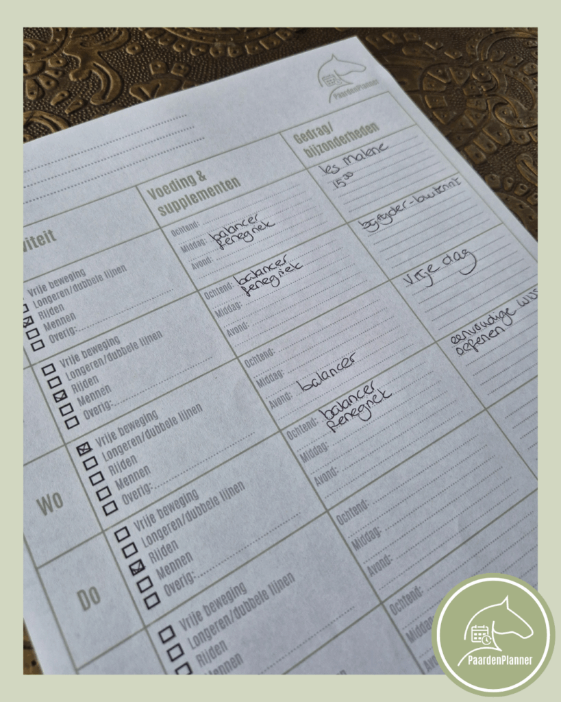 📘 Dagelijks overzicht van alles rond je paard